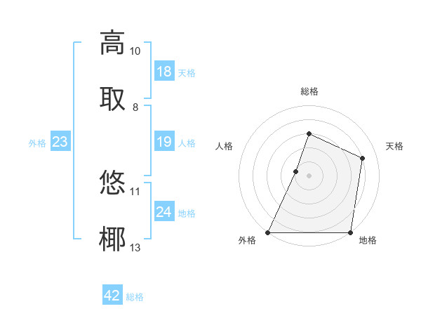 高取 悠椰さんの総格は42画の3点!