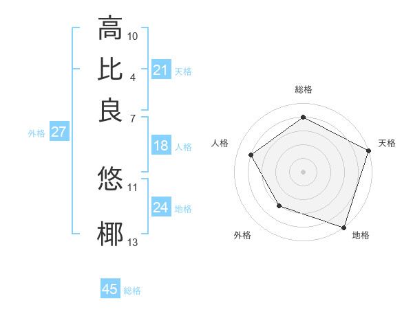 高比良 悠椰さんの天格は21画の5点!