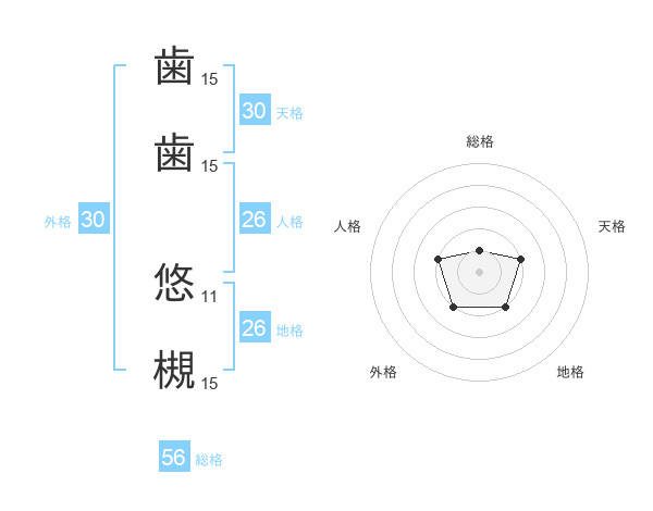 歯歯 悠槻さんの外格は30画の2点!