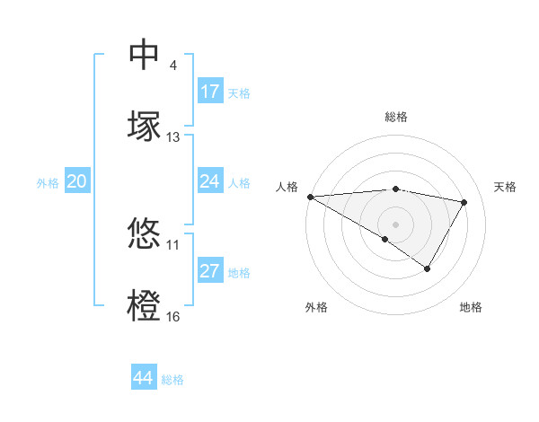 中塚 悠橙さんを姓名の画数から五運を鑑定