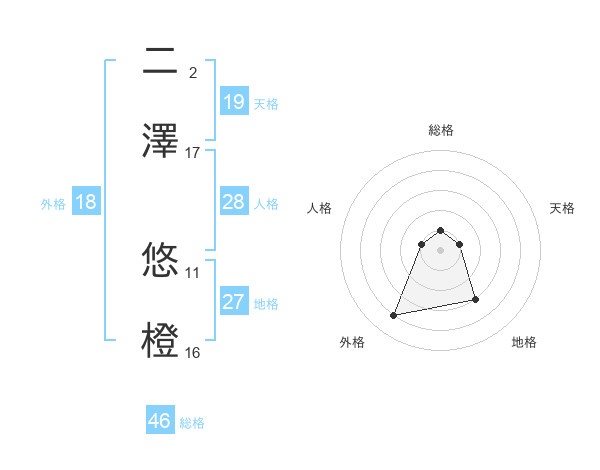 二澤 悠橙さんを姓名の画数から五運を鑑定