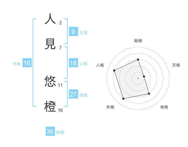 人見 悠橙さんの総格は36画の3点!