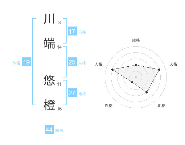 川端 悠橙さんの天格は17画の4点!
