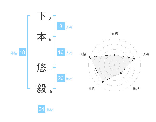 下本 悠毅さんの外格は18画の4点!