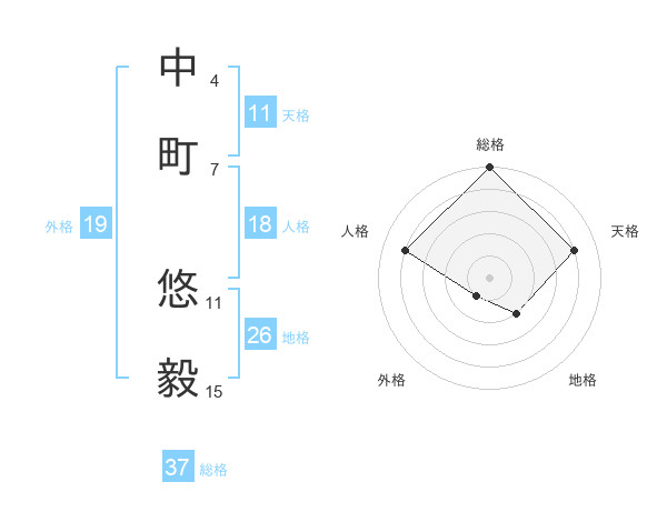 中町 悠毅さんを姓名の画数から五運を鑑定