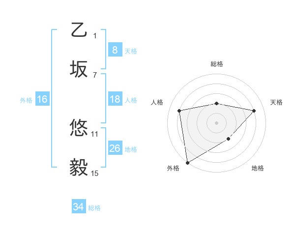 乙坂 悠毅さんの地格は26画の2点!