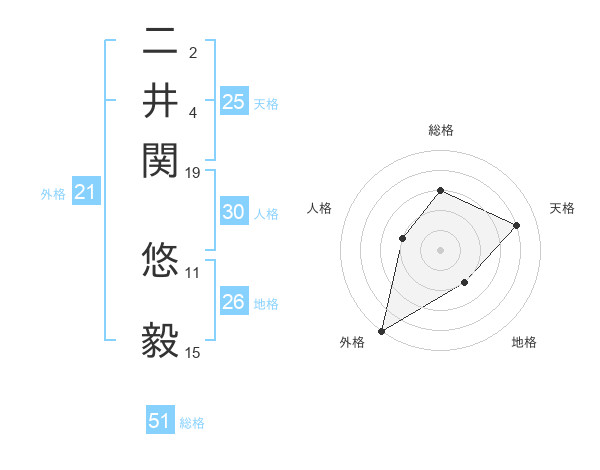 二井関 悠毅さんの総格は51画の3点!