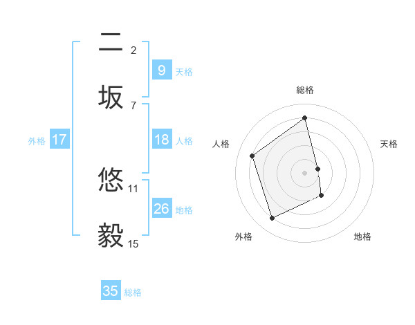 二坂 悠毅さんの総格は35画の4点!