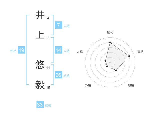 井上 悠毅さんの総格は33画の4点!