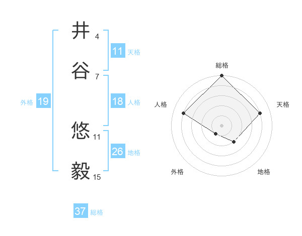 井谷 悠毅さんの総格は37画の5点!
