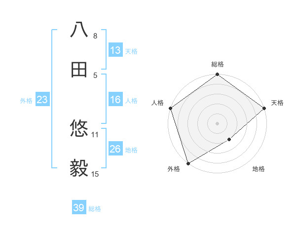 八田 悠毅さんを姓名の画数から五運を鑑定