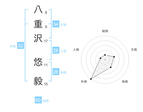 八重沢 悠毅さんの総格は60画の1点!