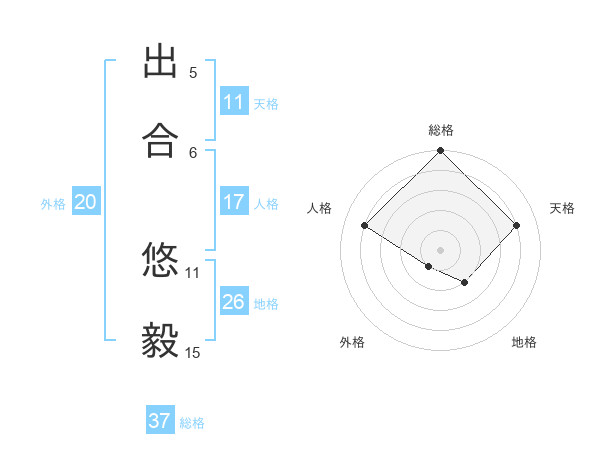 出合 悠毅さんの総格は37画の5点!