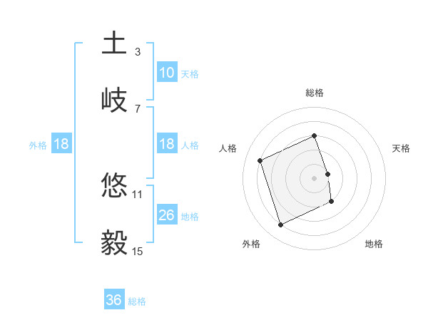 土岐 悠毅さんの地格は26画の2点!