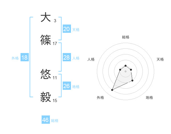 大篠 悠毅さんの総格は46画の1点!