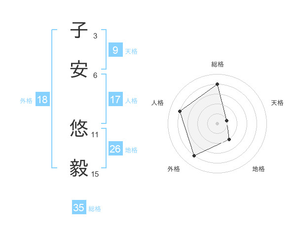 子安 悠毅さんの総格は35画の4点!