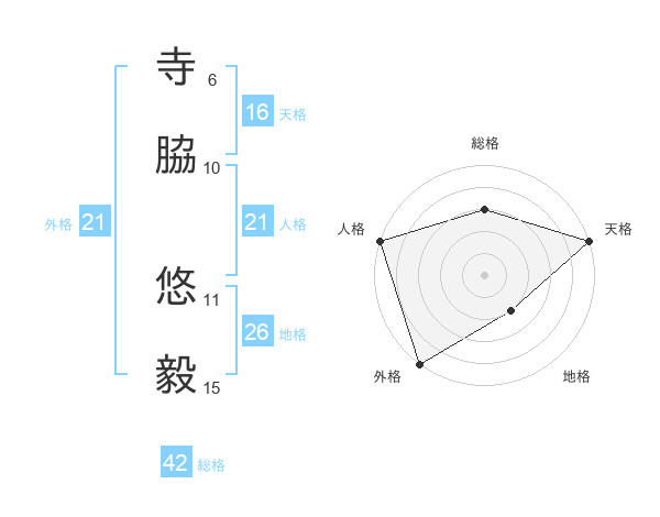 寺脇 悠毅さんの総格は42画の3点!