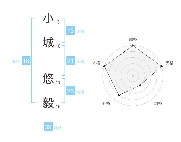 小城 悠毅さんの総格は39画の5点!