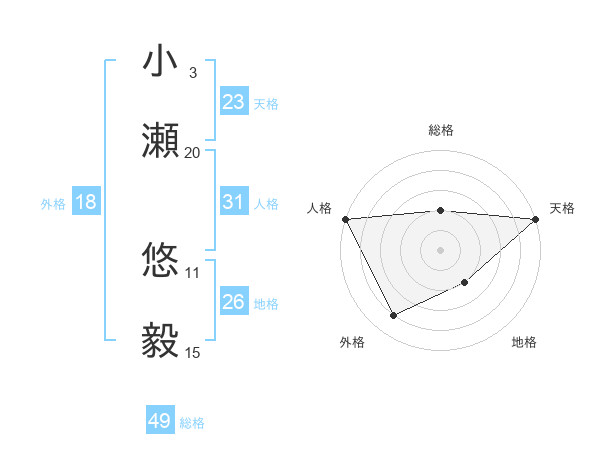 小瀬 悠毅さんの総格は49画の2点!