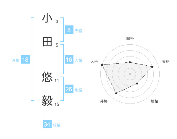 小田 悠毅さんを姓名の画数から五運を鑑定