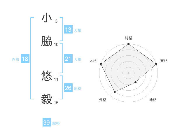 小脇 悠毅さんの総格は39画の5点!