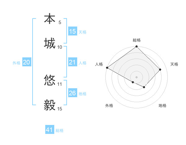 本城 悠毅さんの地格は26画の2点!