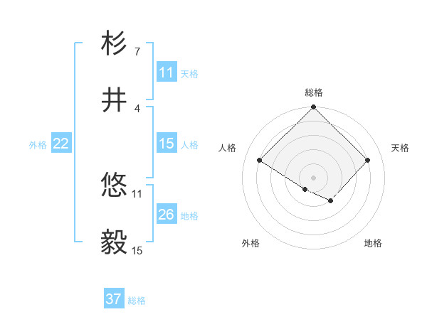 杉井 悠毅さんを姓名の画数から五運を鑑定