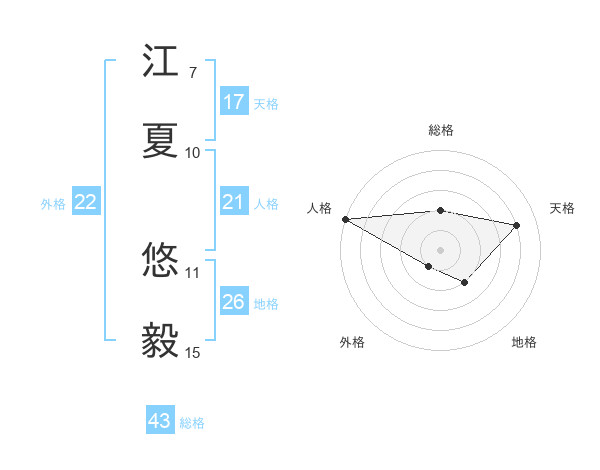 江夏 悠毅さんを姓名の画数から五運を鑑定
