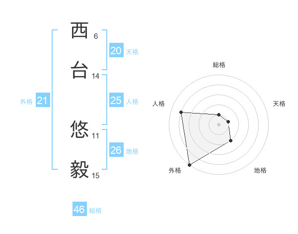 西台 悠毅さんを姓名の画数から五運を鑑定