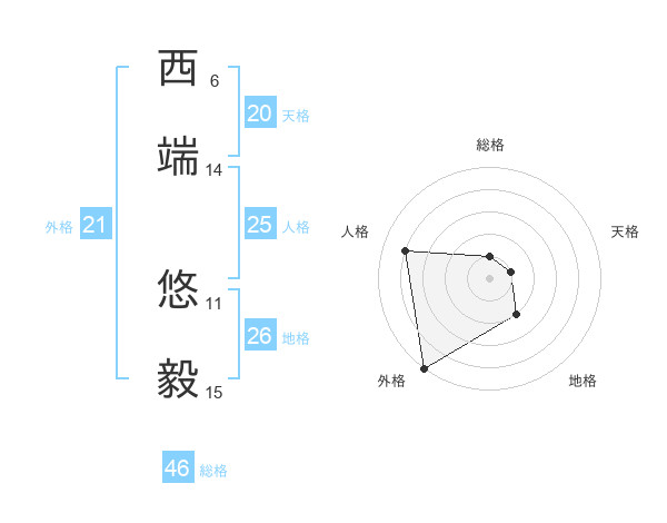 西端 悠毅さんを姓名の画数から五運を鑑定