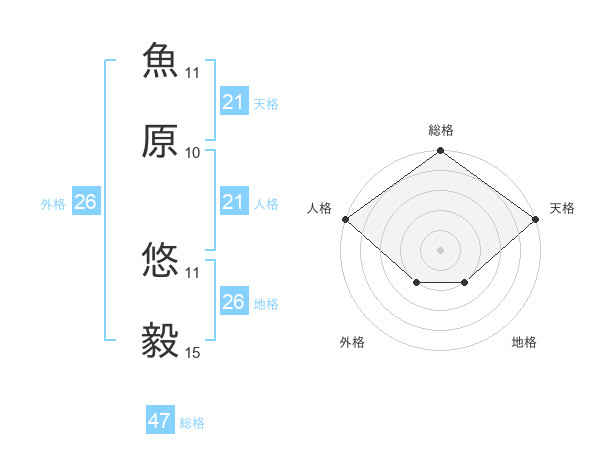 魚原 悠毅さんの天格は21画の5点!