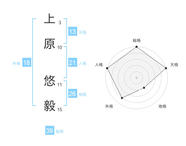 上原 悠毅さんを姓名の画数から五運を鑑定