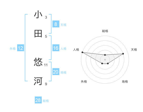 小田 悠河さんの天格は8画の4点!