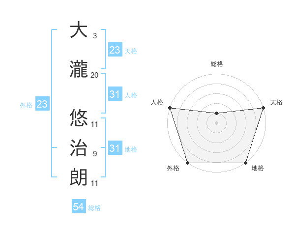 大瀧 悠治朗さんの総格は54画の1点!