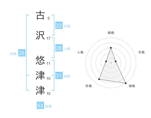 古沢 悠津津さんを姓名の画数から五運を鑑定