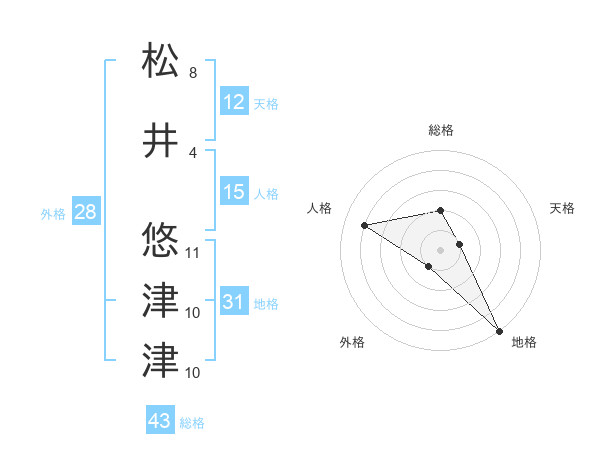 松井 悠津津さんの総格は43画の2点!