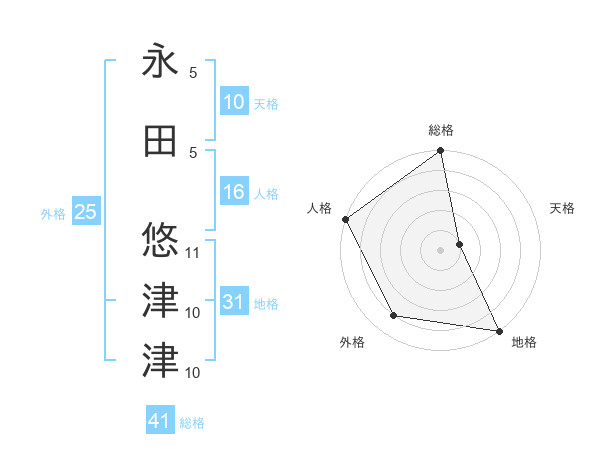 永田 悠津津さんを姓名の画数から五運を鑑定
