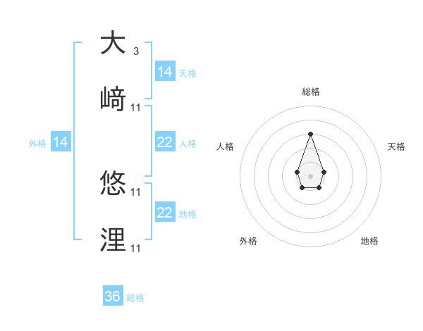 大﨑 悠浬さんを姓名の画数から五運を鑑定