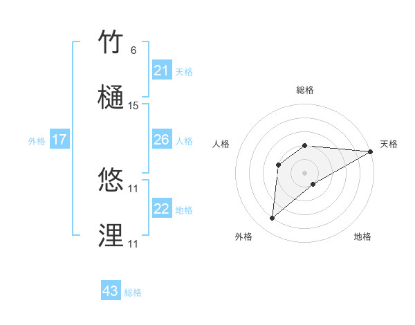 竹樋 悠浬さんの天格は21画の5点!
