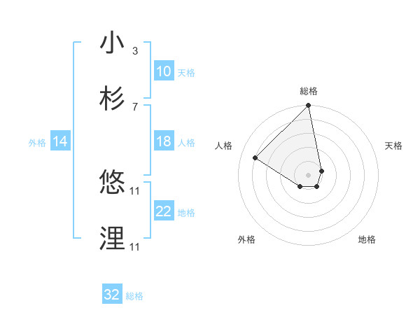 小杉 悠浬さんを姓名の画数から五運を鑑定
