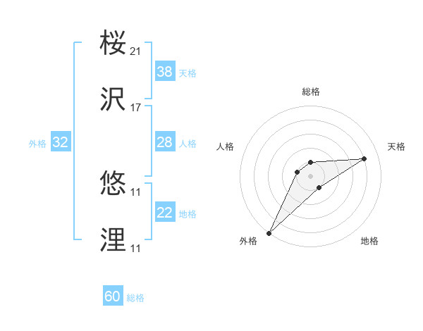 桜沢 悠浬さんの外格は32画の5点!