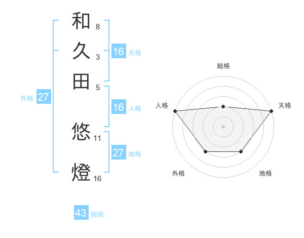 和久田 悠燈さんの天格は16画の5点!