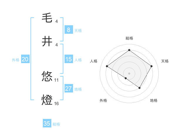 毛井 悠燈さんの総格は35画の4点!