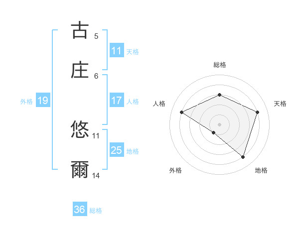 古庄 悠爾さんの天格は11画の4点!