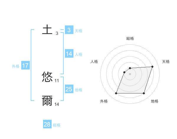 土 悠爾さんの総格は28画の1点!