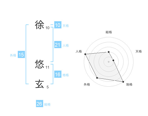 徐 悠玄さんの総格は26画の2点!