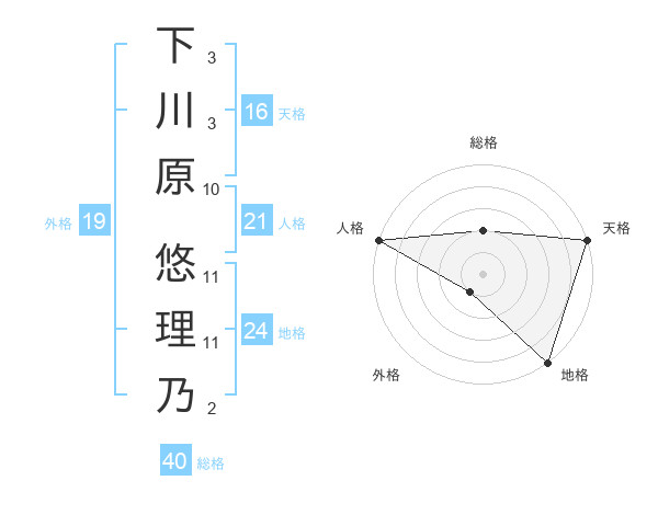 下川原 悠理乃さんを姓名の画数から五運を鑑定