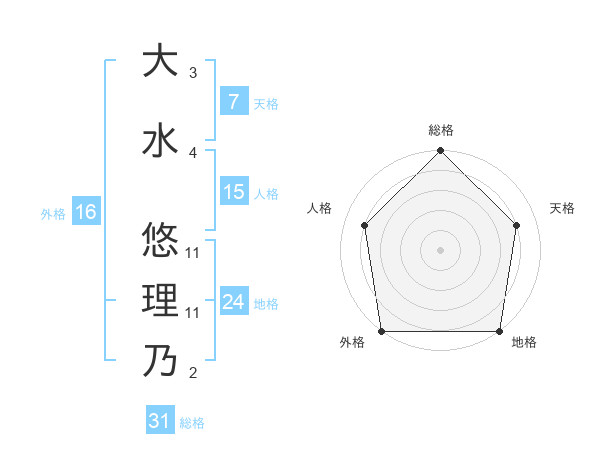 大水 悠理乃さんを姓名の画数から五運を鑑定
