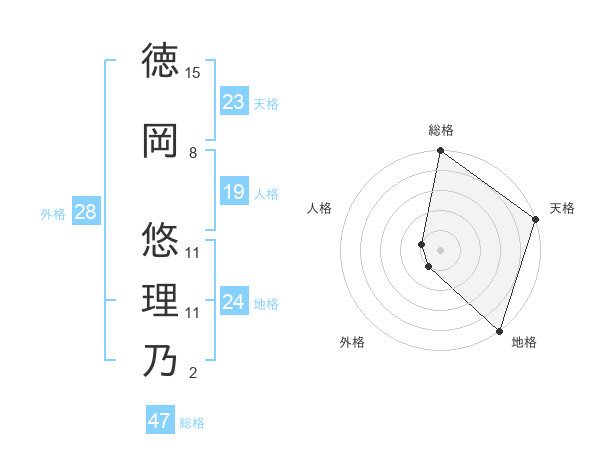 徳岡 悠理乃さんの総格は47画の5点!