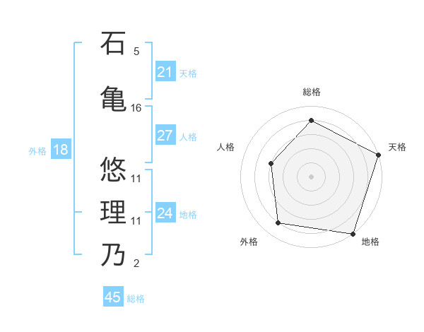 石亀 悠理乃さんを姓名の画数から五運を鑑定